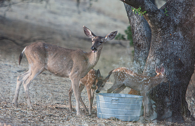 We've removed brush for fire mitigation. We are aware that this brush is browsing grub for deer. There is still plenty of brush in the canyon, but we put out food for the herd anyway. It is a treat to have these families come through, often while we're eating our evening meal. Rural entertainment.