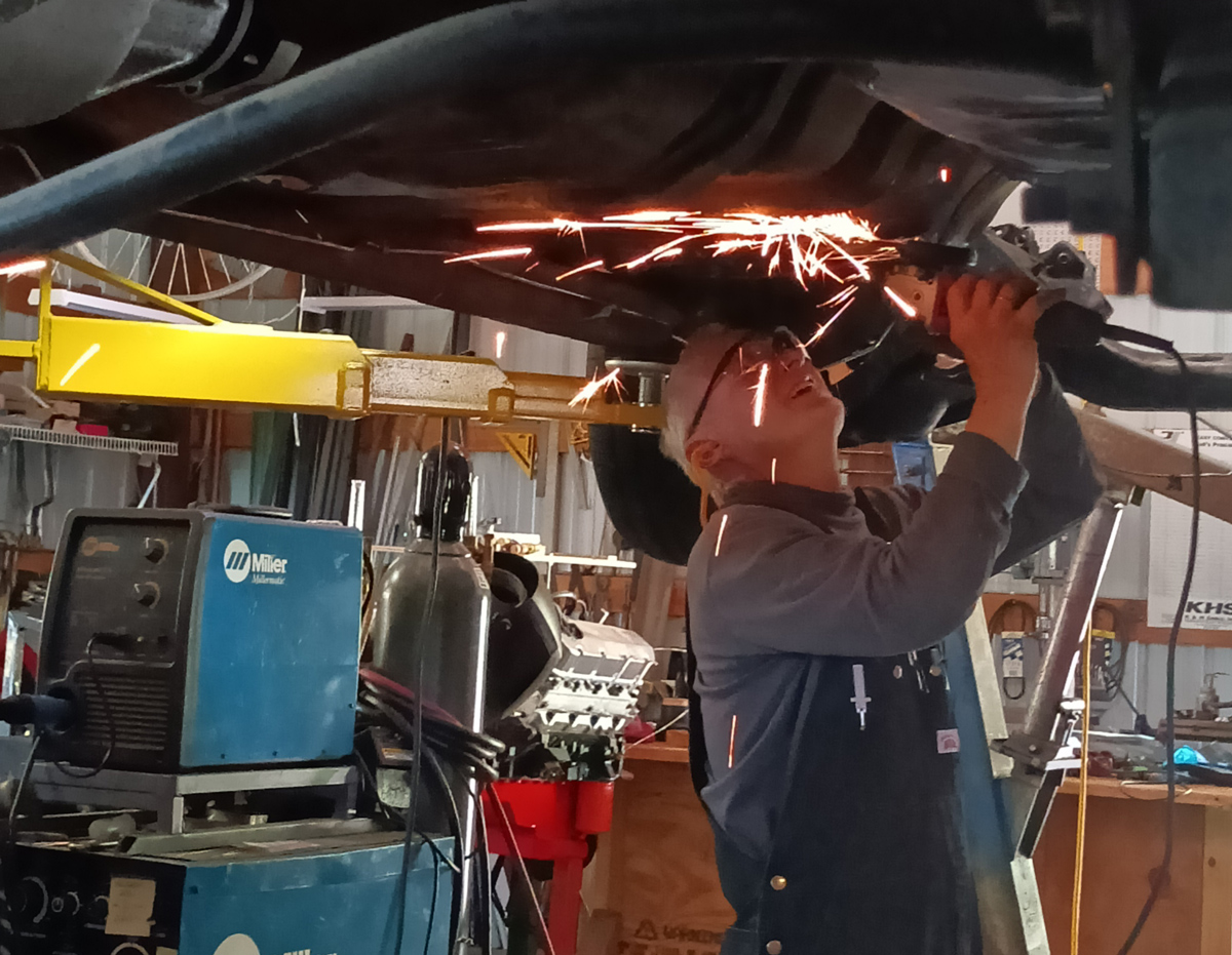 A partial list: completely removed the whole front clip; completely removed the dash; cut away rusted areas, patch-welded with new steel; fabricated patches for areas with tricky curves and angles; stripped the complete interior down to bare metal.
