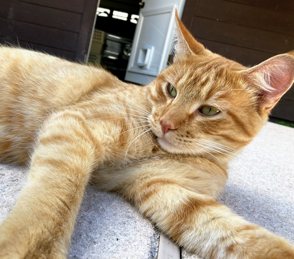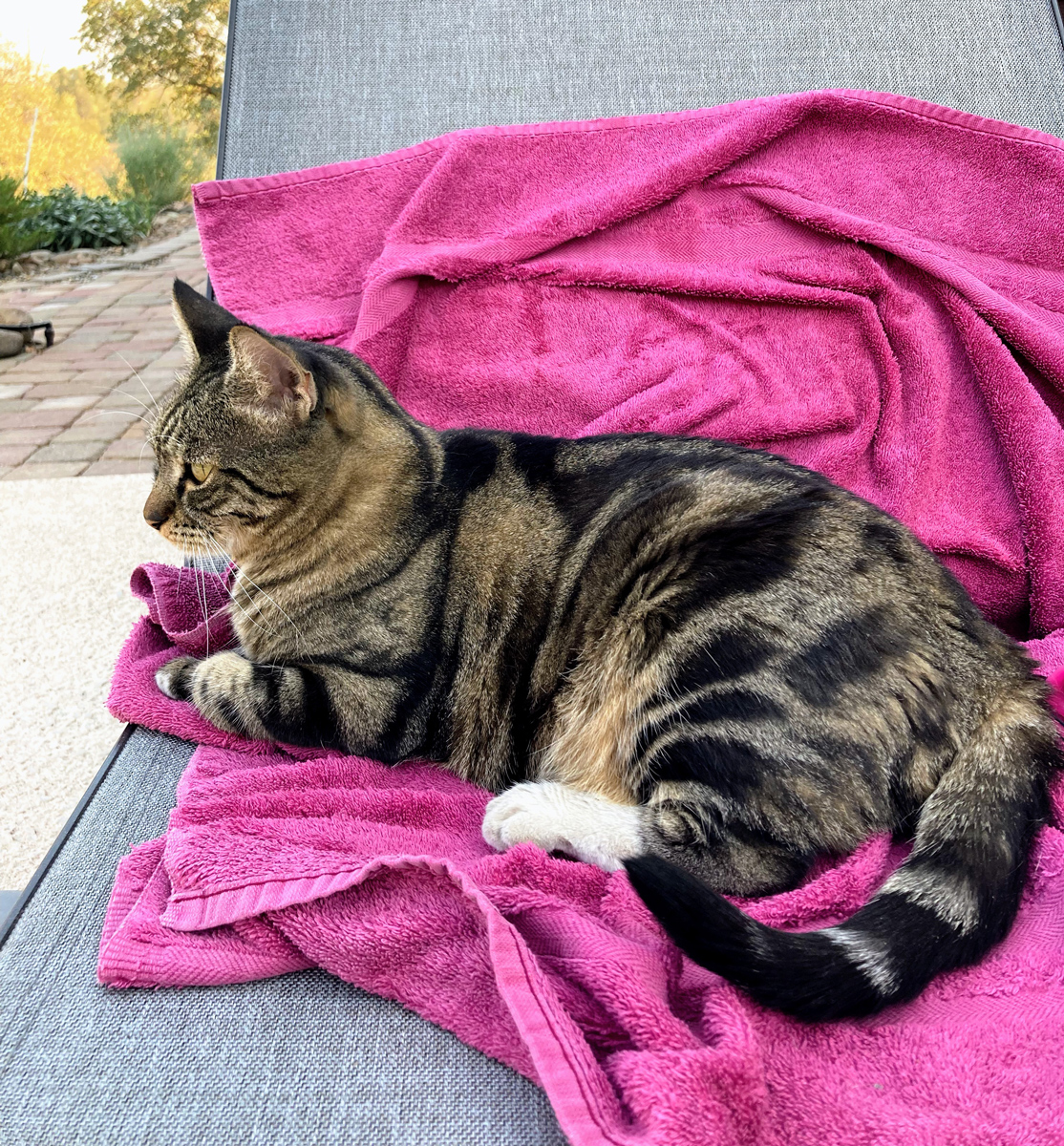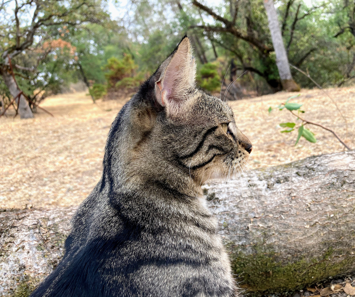 April 2021, a little over four months in to living in our new space, we got a call from a neighbor asking us if our cat was missing. We checked and everyone was indoors. The following day a friendly tabby was wandering around our place. Michael sat down in the back and this cat climbed onto his lap. After checking for a chip at the vet, and no responses from posted signs and online notices, we named her Rey. The force was strong in her.